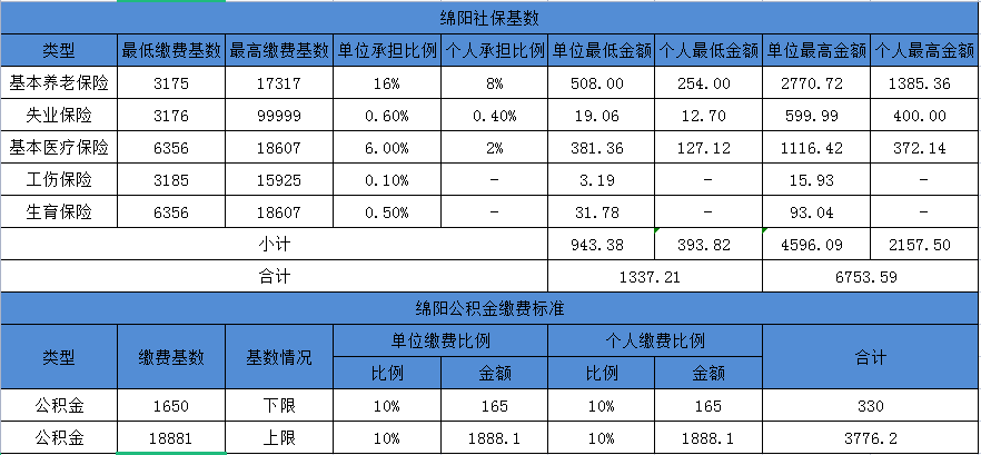 以下是綿陽市2021年社保、公積金繳費基數(shù)表