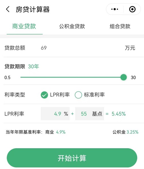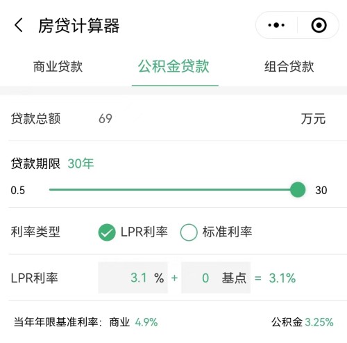 這個(gè)是按69萬(wàn) 30年期限 ,公積金3.1%利率進(jìn)行計(jì)算的公式